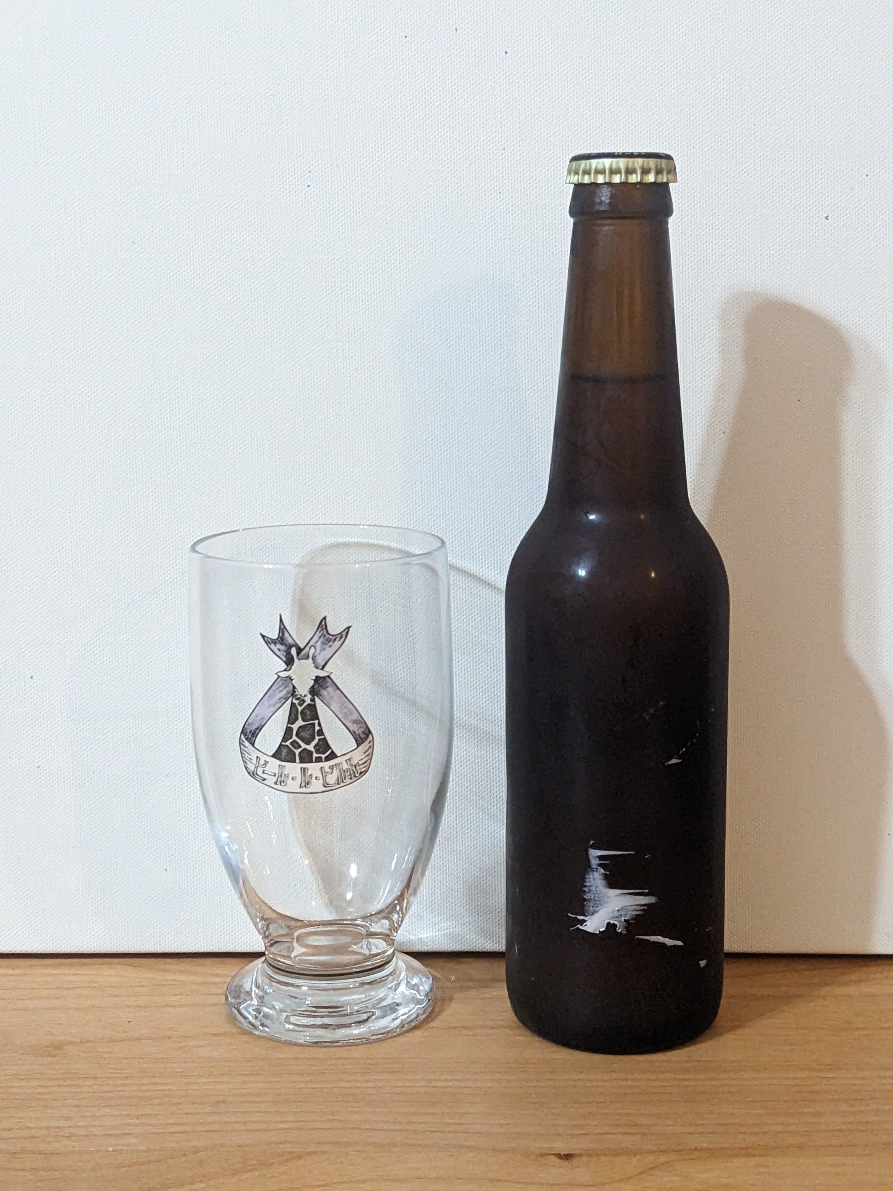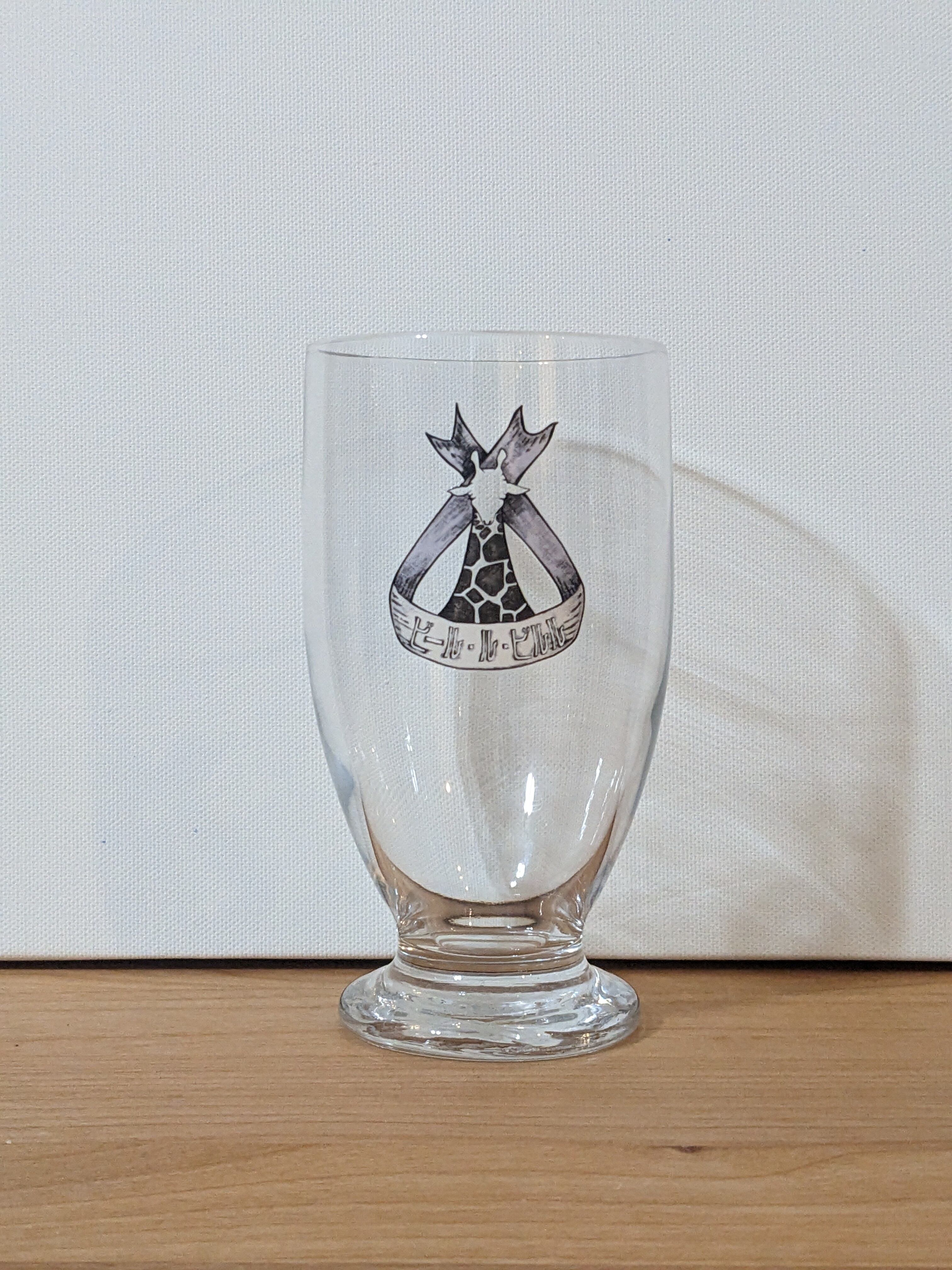 当ショップのロゴ入のグラスです キリンさんの黄色の部分だけ透明にっており、ビールを注いでいただくことで黄色になります 大きさは写真3枚目のビール瓶の大きさと比較ください